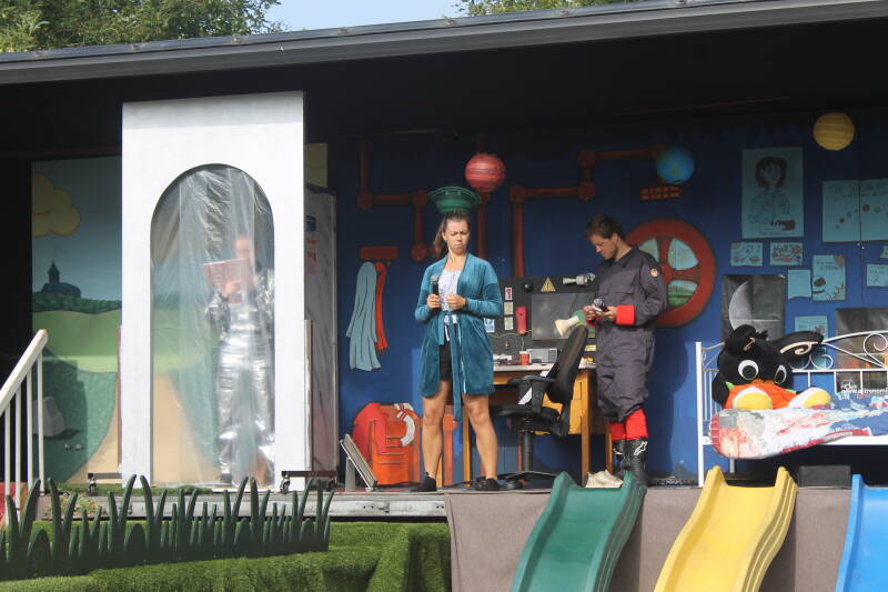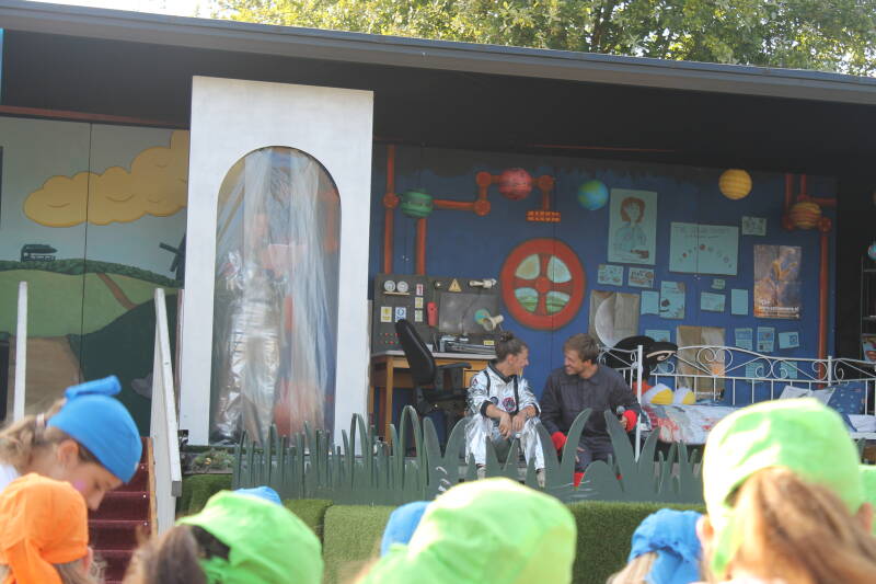 Op de bonte avond was het zo ver: na een week trainen zou de raket naar de maan geschoten worden. Helaas ging dat mis en was er ineens veel rook en vuur. π₯ Gelukkig kwam Sterre er ongeschonden vanaf en wist Julia Verna in haar laatste audiodagboek te vertellen dat zij ook niet in één keer astronaut is geworden. De toehoorders gingen naar huis met de belangrijke levensles om nooit je dromen op te geven.